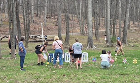 This was the first year that the Woods Homeowners Association (WHOA) held their annual Easter Egg Hunt at Winter Camp Park on April 4th. By all accounts it was OUTSTANDING! It was fun for both the hiders and the seekers. Comments included "The best Easter Egg hunt we've ever been to!" and many other similar comments. After finding all the eggs and trading in gold eggs for special prizes, many families hung out in the park to enjoy the beautiful day and setting.